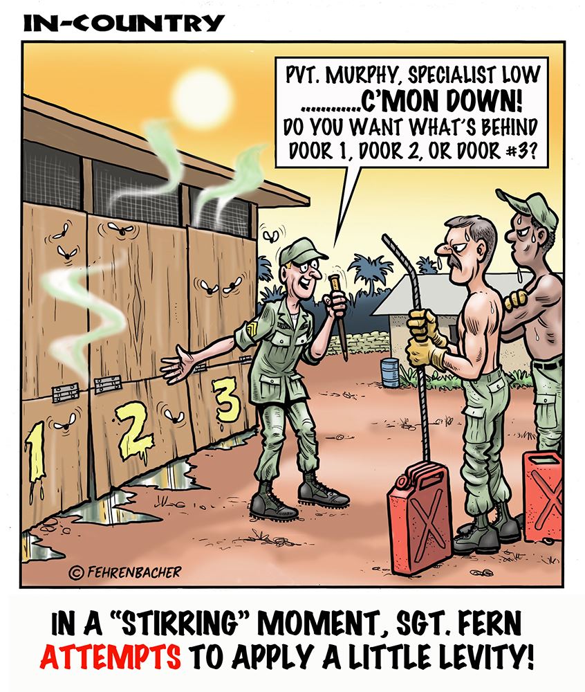 Phil enlisted in the Army in 1965 where you served for years in Vietnam.  He became a graphic designer and has worked for the state of Oregon for 26 years.  He retired in 2003 and started the Cartoon "In-Country".  The cartoons reflect his experiences during his tour of duty in South Vietnam.